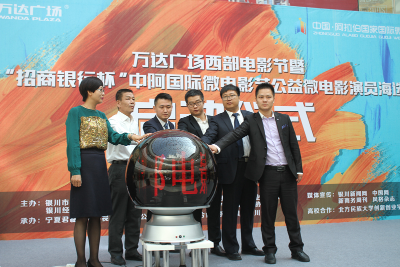 萬達廣場西部電影節(jié)暨“招商銀行杯”中阿國際微電影節(jié)演員海選啟動儀式于2016年9月28日上午10:30分在銀川西夏萬達召開。此次中阿國家國際微電影節(jié)演員海選啟動儀式由銀川市人民政府、銀川經(jīng)濟技術(shù)開發(fā)區(qū)管委會主辦,寧夏君臨天下影視傳媒有限公司承辦,由銀川萬達置業(yè)有限公司、寧夏微電影協(xié)會承辦執(zhí)行。招商銀行銀川分行獨家冠名。中國網(wǎng)微電影頻道、銀川新聞網(wǎng)、新商務(wù)周刊、風(fēng)格雜志作為戰(zhàn)略媒體合作。